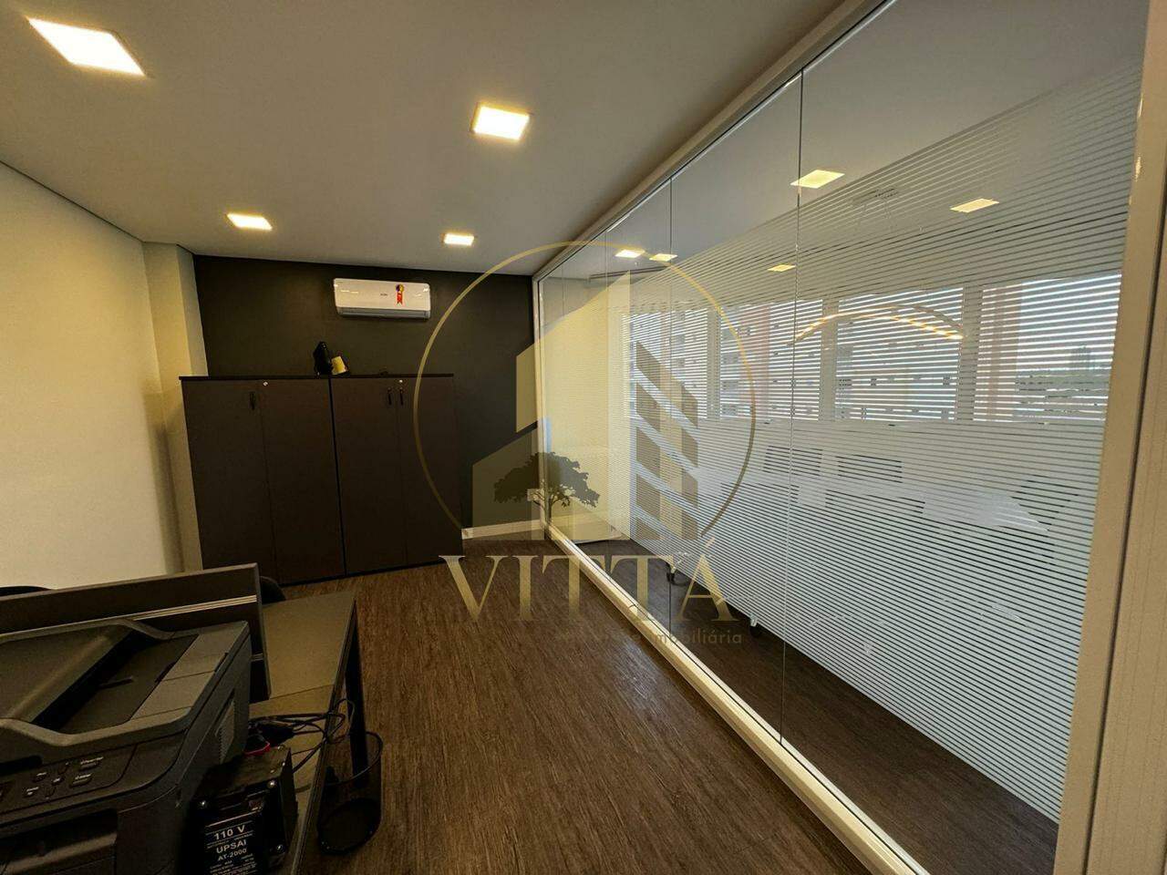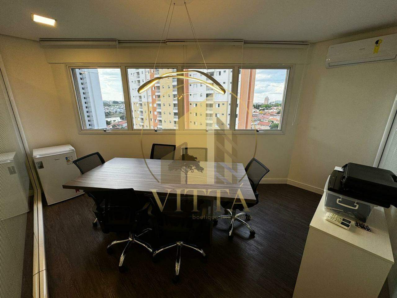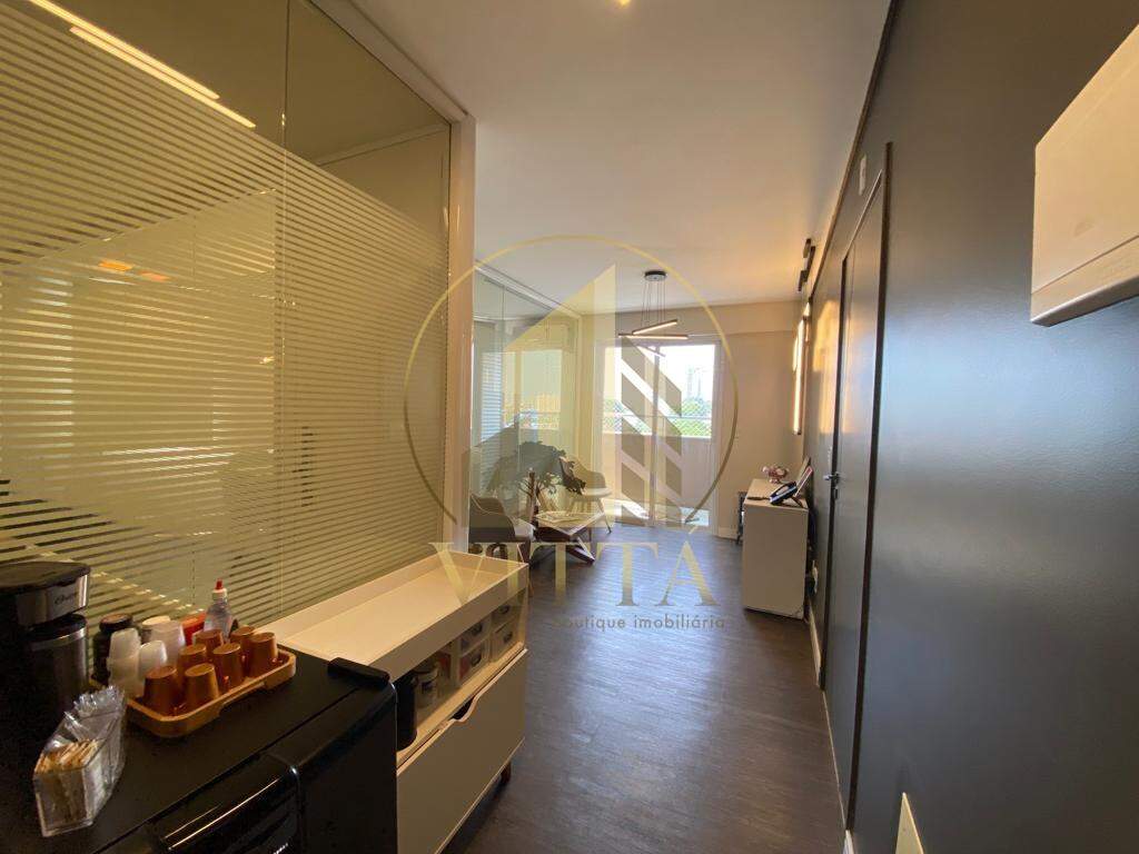 Conjunto comercial com área total de 90,537m² e 46,42m² de área útil, situado na Torre Corporate do Park Mall em Indaiatuba. O espaço é composto por três salas bem planejadas, com divisórias de madeira e vidro até o teto, proporcionando um ambiente sofisticado e moderno. As portas maciças garantem privacidade e excelente isolamento acústico. O imóvel também conta com um banheiro privativo e uma vaga de garagem coberta no subsolo. Essa sala ainda conta com uma sacada com vista ao Park Ecológico.