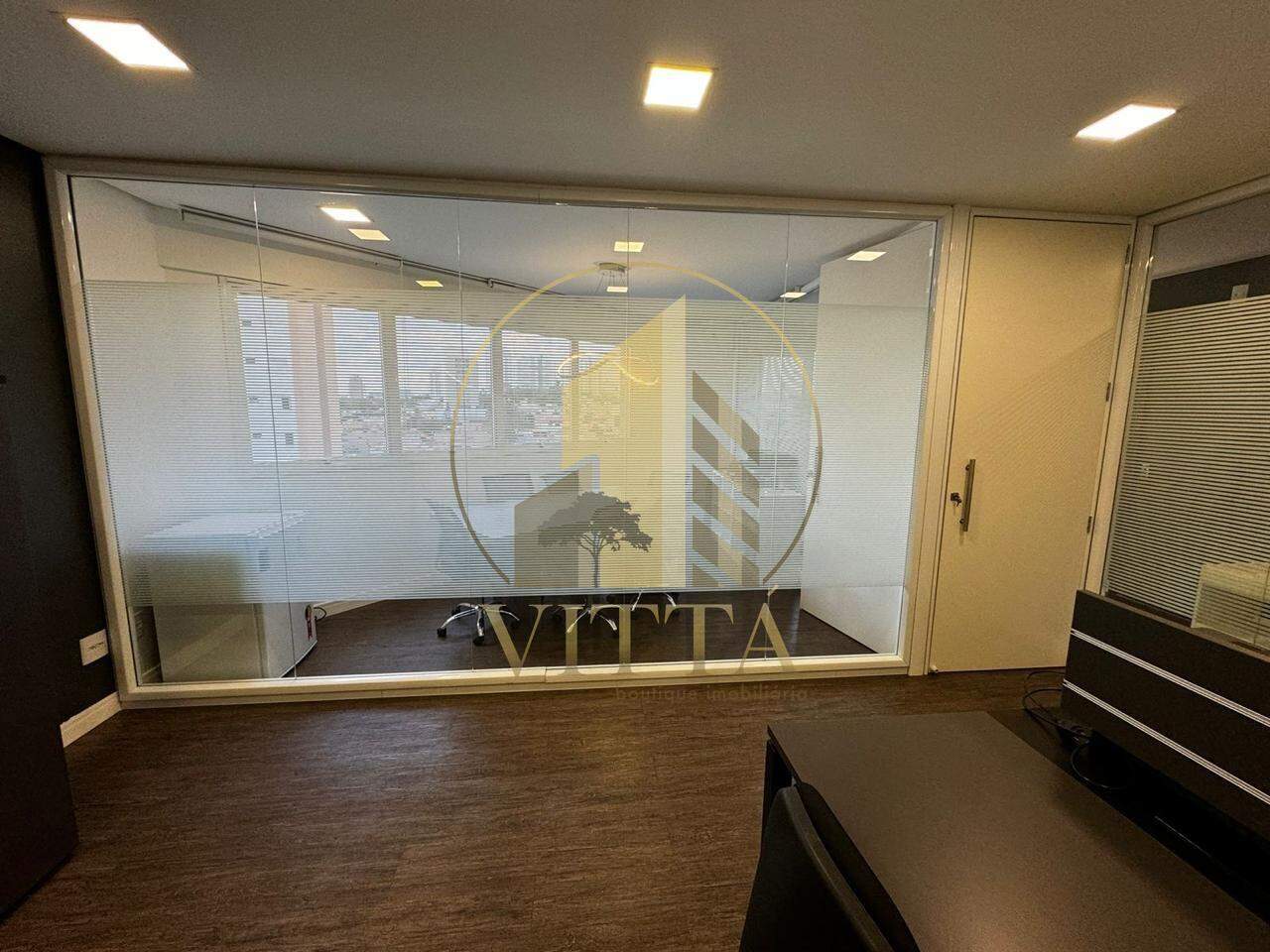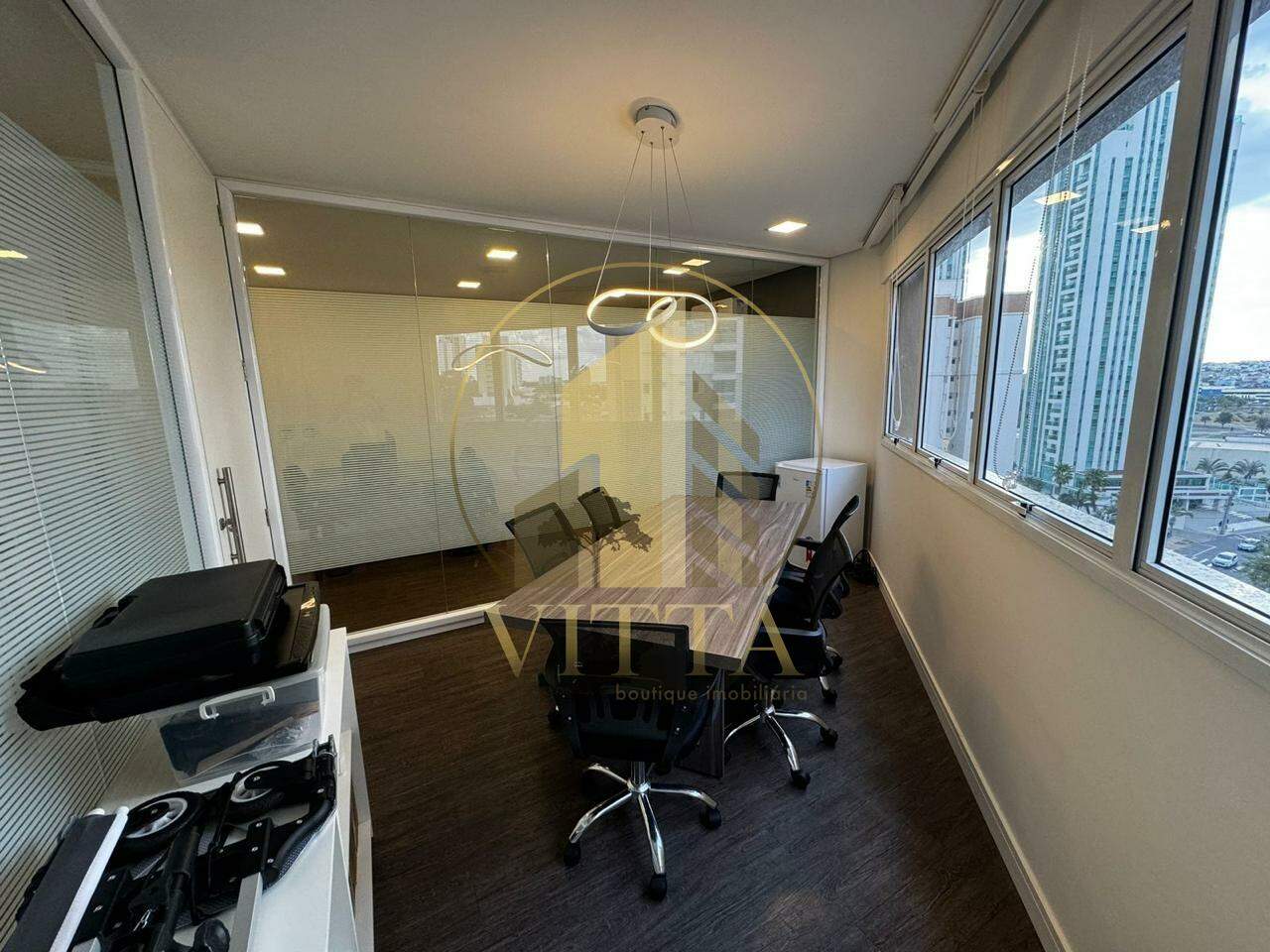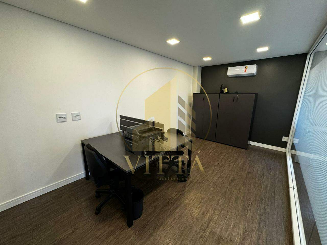 Conjunto comercial com área total de 90,537m² e 46,42m² de área útil, situado na Torre Corporate do Park Mall em Indaiatuba. O espaço é composto por três salas bem planejadas, com divisórias de madeira e vidro até o teto, proporcionando um ambiente sofisticado e moderno. As portas maciças garantem privacidade e excelente isolamento acústico. O imóvel também conta com um banheiro privativo e uma vaga de garagem coberta no subsolo. Essa sala ainda conta com uma sacada com vista ao Park Ecológico.